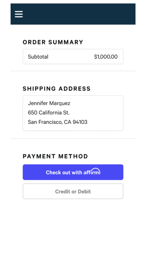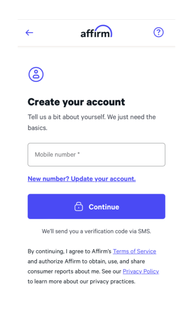 Select Affirm at checkout, then enter a few simple pieces of info for a real time decision